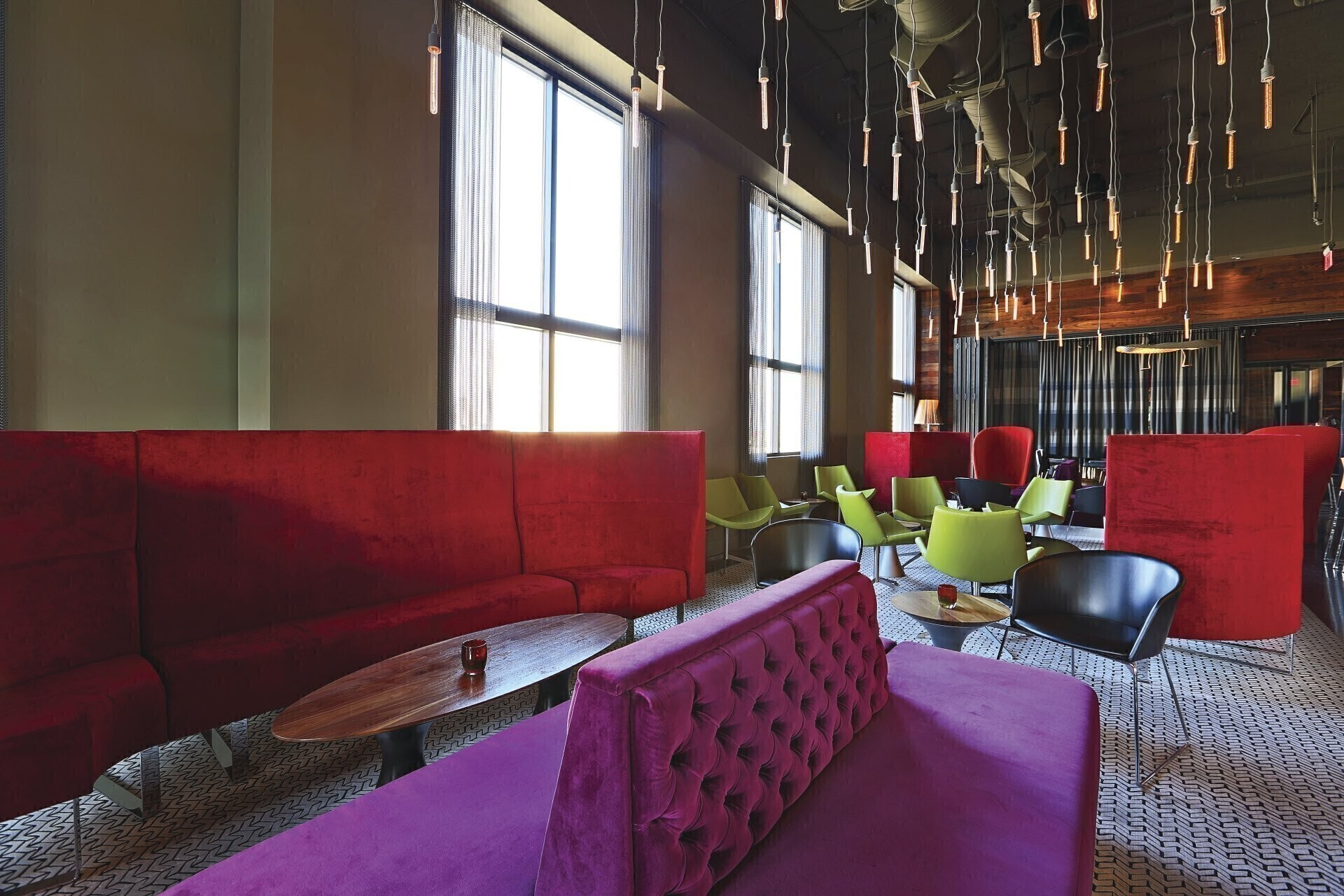 Atop the hotel, Louisville’s first open-air rooftop bar delivers a one-of-a-kind experience. 8Up Elevated Drinkery & Kitchen offers three distinct settings—a moody restaurant, a vibrant lounge, and a rooftop terrace—each designed to frame the city’s skyline and enhance the guest experience. Flexible spaces, including a glass-partitioned conference area, transition seamlessly between private gatherings and lively dining, ensuring every moment feels curated and connected.