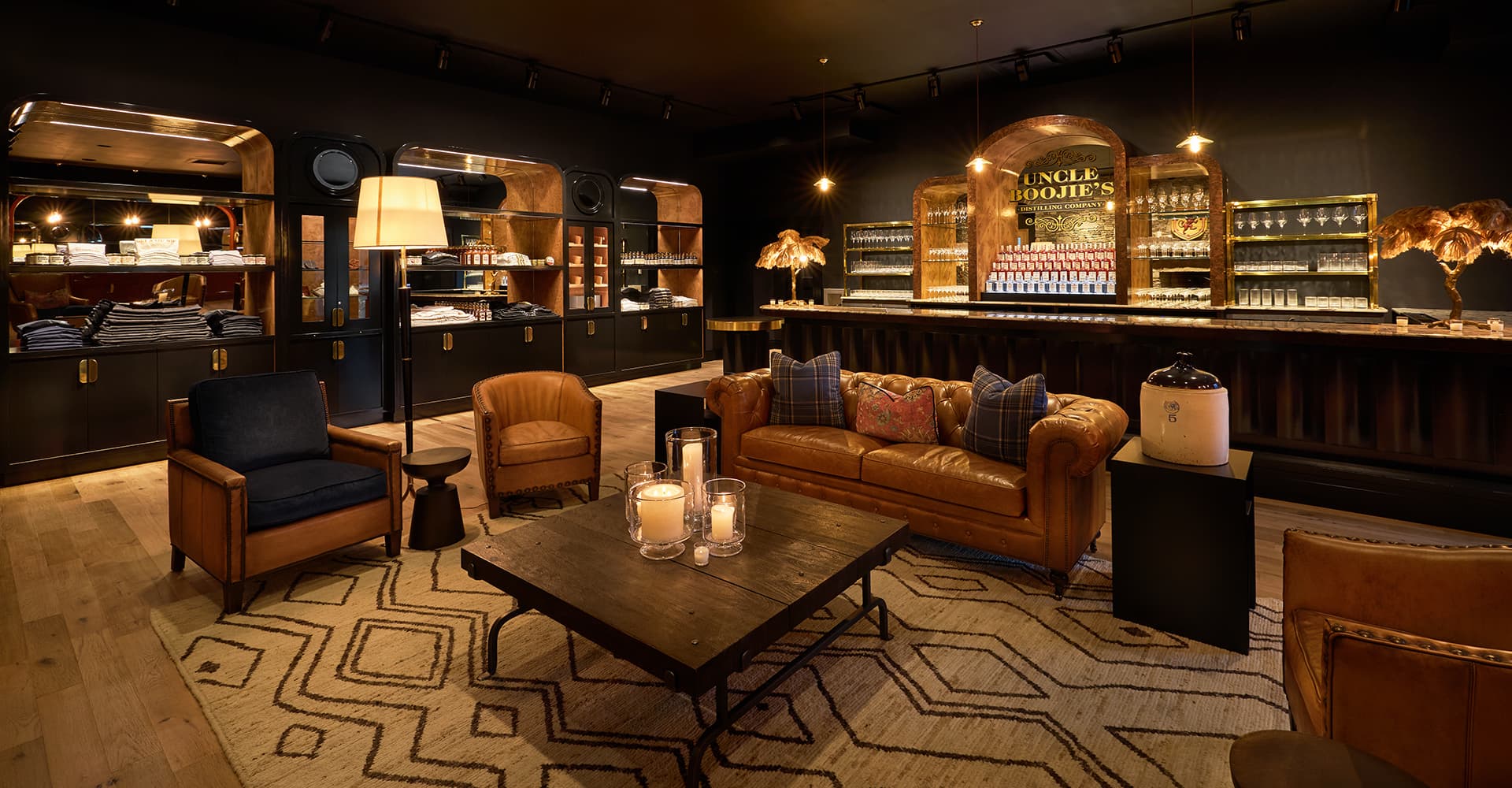 The space was crafted for function and for memory. Guests draw their own bourbon straight from the barrel. They label their bottles by hand. They learn the story of Uncle Boojie's from the barrel folks who know it by heart.